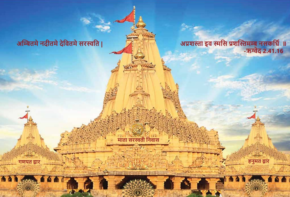 Mata Saraswati temple would be build as per the Vastushastra and it would be a fabulous example of Sanatan Dharma vastukala. The entrance of Mata Swaraswati Dham would be known as “Ganpat Dwar” and exit would be “Hanumat Dwar”. In the Mata Saraswati Dham, there will be Shankaracharya Paduka Temple and it would be known as “Bhagwatpaad Aadhya Shankaracharya Paduka Mandir”. Whenever pujya Shankaracharya Ji will visit Mata Saraswati Dham, he will stay in this temple. The inspiration of temple of Saraswati Dham is taken from famous Somnath Temple and Saracwati corridor would be inspired from Mahankaal Ujjain and Kashi Vishwanath, Varanashi. The grand temple will be approximately 500m x 500m and the entire complex will be at least 1500m x 2000m. In the temple premises, there will be a big audio visual exhibition explaining about Mata Saraswati. Devotees will be made aware of all the forms of Mother Saraswati and the detailed divine information about Mata Saraswati will be given to the devotees. A largest Veena will be installed in a garden of the Dham campus and it will be applied for the Guinness World Records.